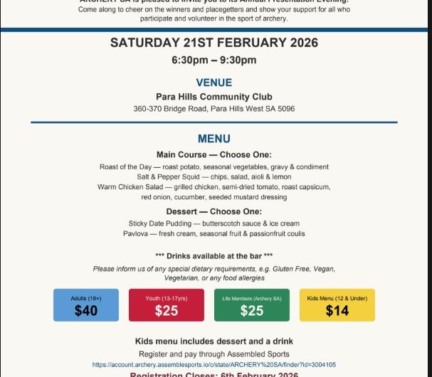 Tickets for the ARCHERY SA Presentation Dinner are now available. Order your tickets now – closing date... Read more