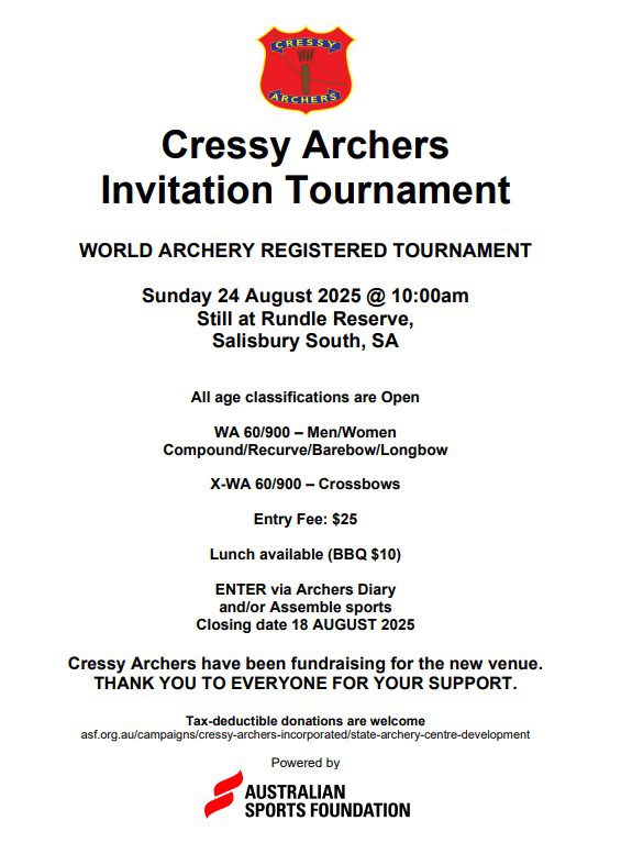All approved QREs* in SA are displayed on the Archery Australia Calendar